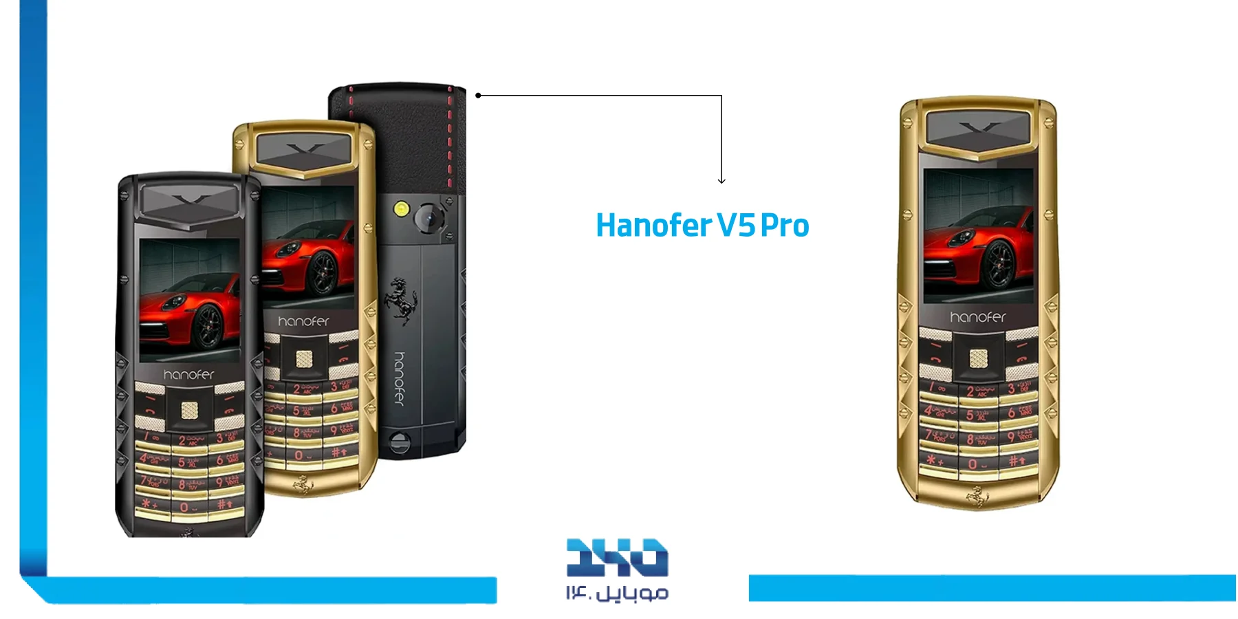 هانوفر V5 Pro با ابعاد 12 × 44.6 × 133.7 میلیمتر و وزن 114 گرم، یک گوشی خوشدست و سبک محسوب میشود. بدنه این گوشی از پلاستیک فشرده مرغوب و فلز ساخته شده که آن را در برابر ضربه و آسیب مقاوم کرده است. طراحی کلاسیک همراه با کیبورد فیزیکی، تایپ و کار با گوشی را آسان کرده و حس نوستالژیک را زنده نگه میدارد.