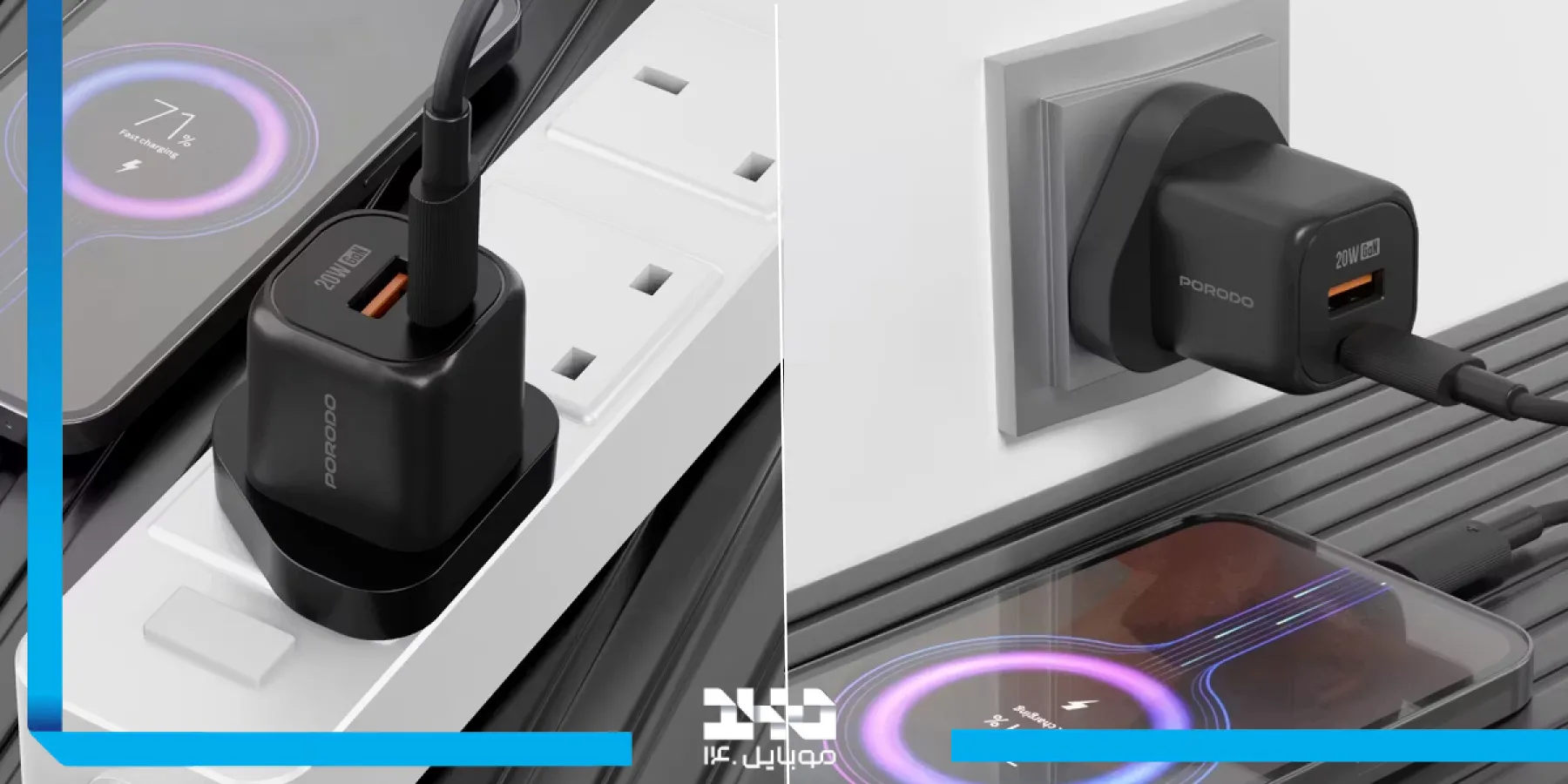 شارژر Porodo FWCH028 یک آداپتور دوپورت است که انعطافپذیری بالایی به کاربر میدهد. در حالی که بسیاری از شارژرهای همرده تنها یک خروجی دارند، این محصول اجازه میدهد دو دستگاه را به صورت همزمان شارژ کنید.
